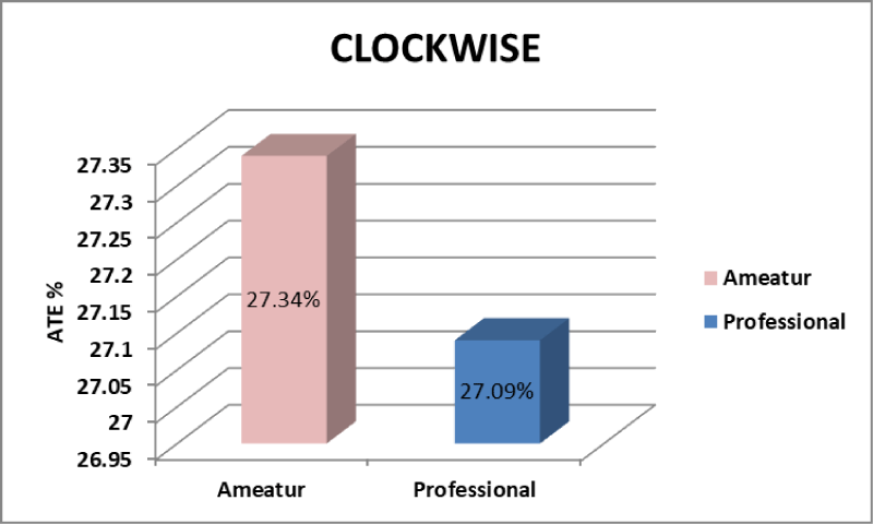 | As seen in Table 4, there is a significant difference in Clockwise tracing error between Amateur and Professional badminton players. *significant difference level at (0.05). |