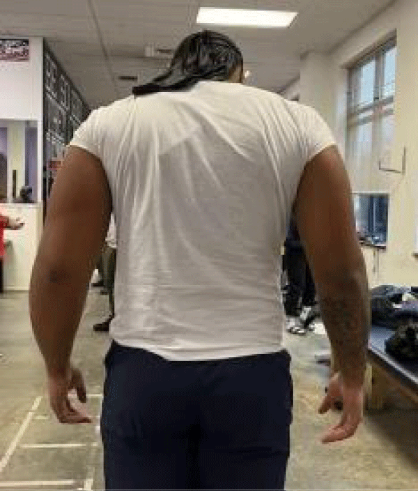 A 19-year-old right-hand dominant male Division 1 college football athlete with no significant past medical history presents to the training room with the complaint of a swollen left arm for the past 3 days (Figures 1-3). He states that it happened without any identifiable trigger, trauma, or inciting event. However, he did several sessions of upper-body weight training earlier in the week consisting of overhead and chest presses. He denies pain, warmth, erythema, weakness, bruising, or pruritis of the skin. He does complain of intermittent numbness in his hand. He also reports no recent illness or fever, chills, or night sweats. Of note, he does report a similar experience of his left chest/shoulder after exercise in the prior year. Of note, the athlete did provide consent for this study.