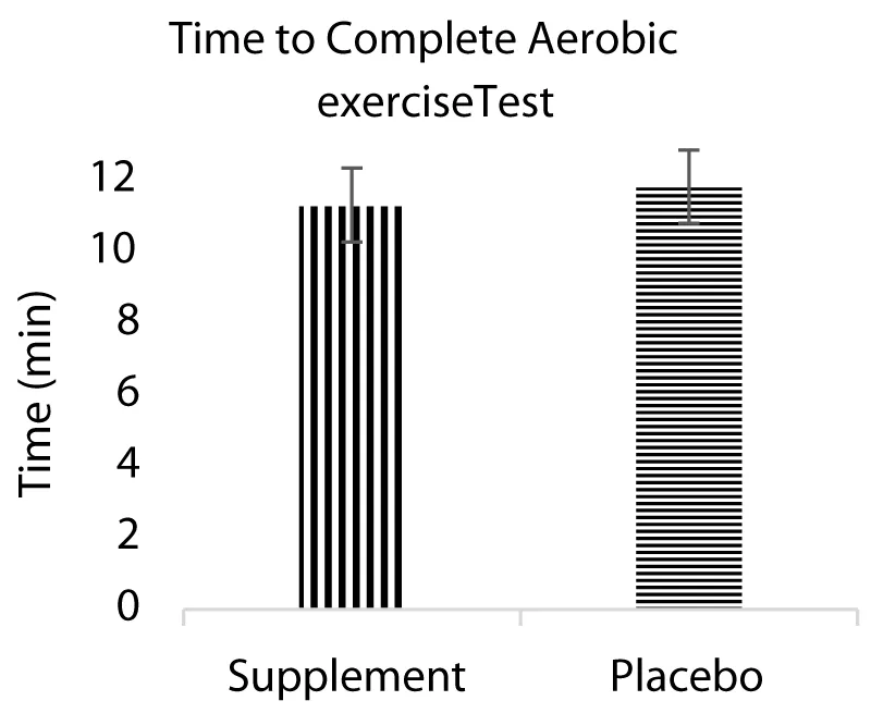 There was no significant difference in the time taken to complete the aerobic exercise test between the supplement and placebo trial (p > 0.05) (Figure 1).